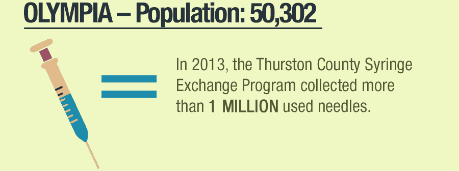 - In 2013, the Thurston County Syringe Exchange Program collected more than 1 million used needles.